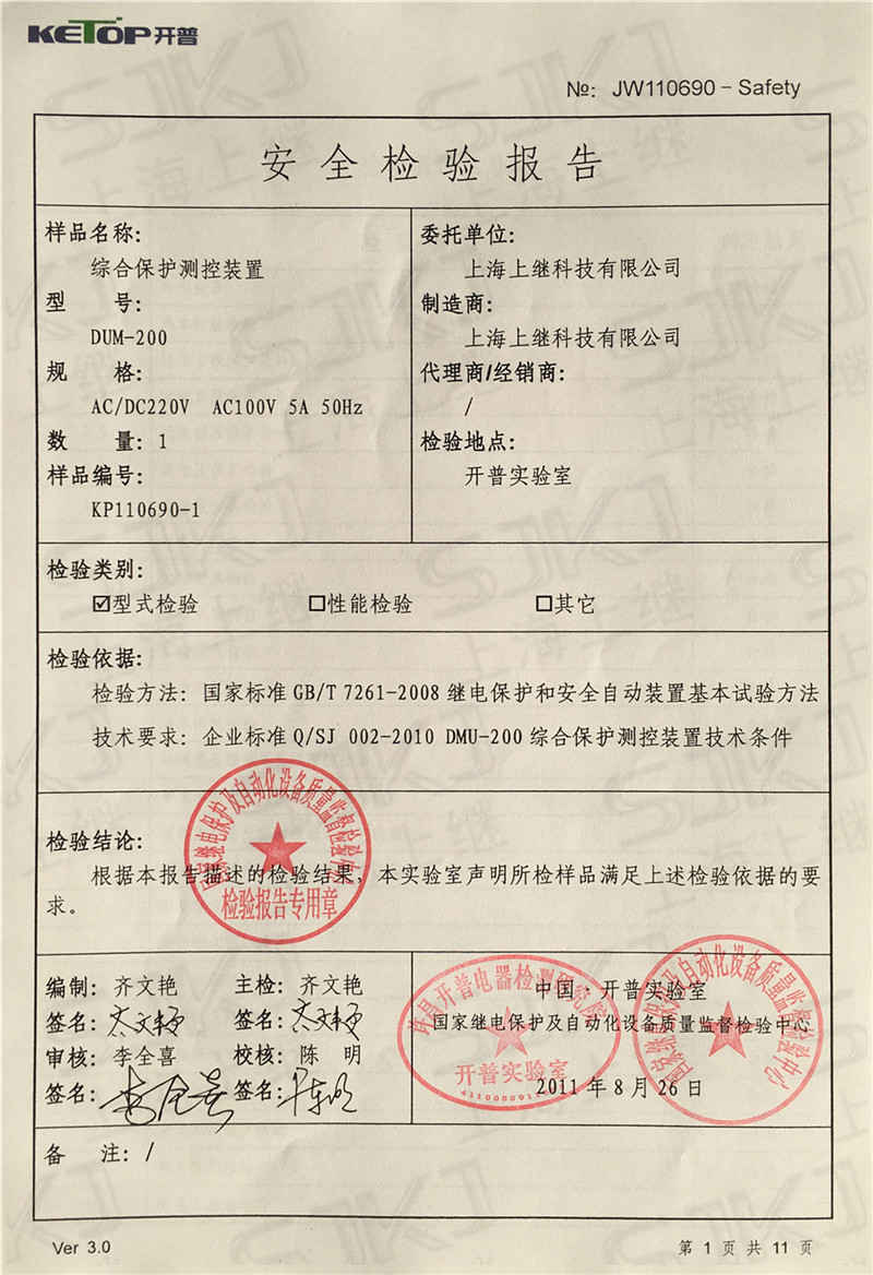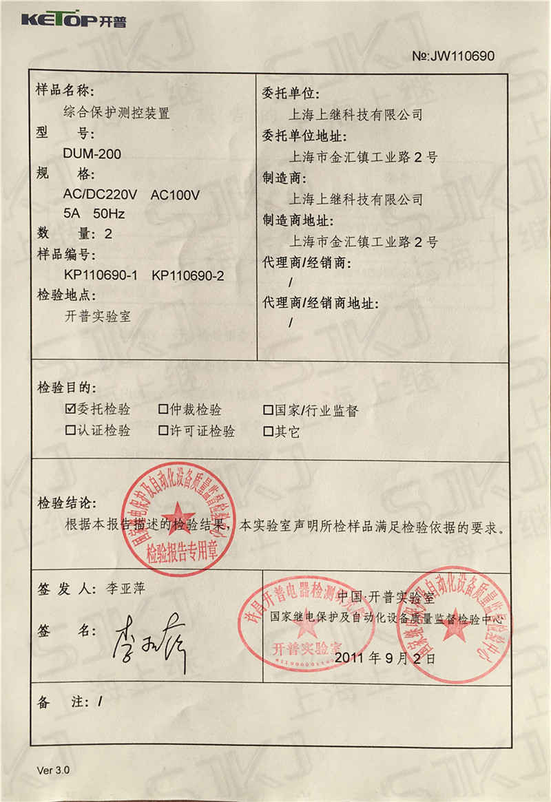 > DUM-200檢驗報告