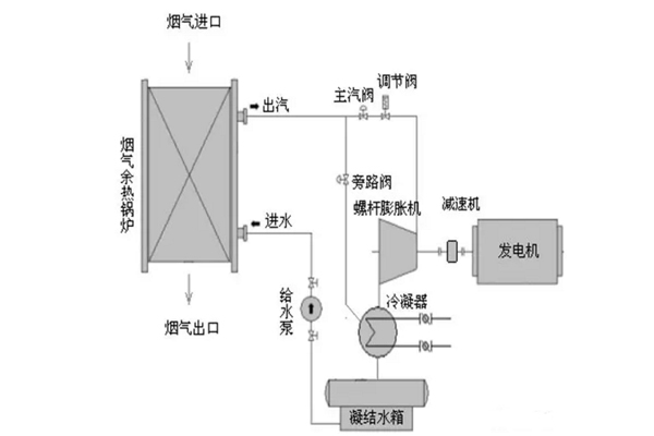 垃圾焚燒發電的汽水系統是指垃圾焚燒發電的余熱鍋爐吸收煙氣熱量產生蒸汽,一部分用于吹灰器吹灰、蒸汽預熱器加熱一次風、除氧器加熱給水除氧、除塵器集灰伴熱等垃圾焚燒工藝設備自用,一部分對外供熱(輸送距離長、運行時間短,基本不可行),現大多數是進入汽輪機進行發電或者直接排放;同時,垃圾焚燒發電汽輪機系統——從垃圾焚燒鍋爐來的飽和蒸汽進入汽輪機做功(1.6Mpa 飽和蒸汽溫度203℃),轉變為0.3 Mpa 的乏汽,進入低壓冷凝器冷卻成冷卻水,這部分能量就白白浪費;經由余熱鍋爐產生的蒸汽或者汽輪機乏汽可以進入ORC余熱發電系統,產生電能,進一步充分利用熱量,實現能量的梯級利用,提供利用效率。