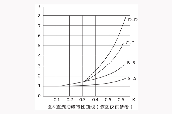 3.繼電器的直流助磁特性曲線(如圖3)E=f(K)應能進行分段調整;