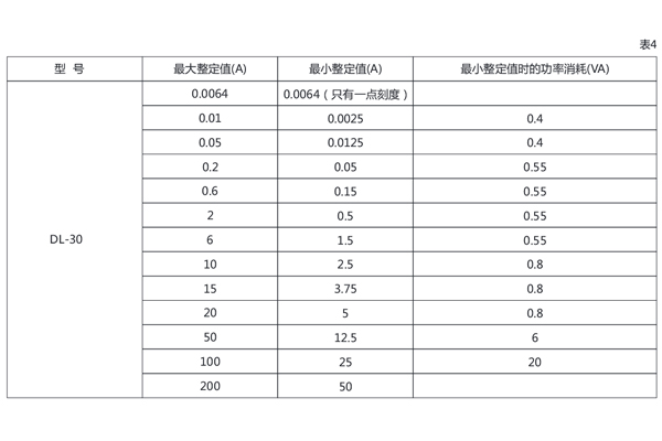 14.功率消耗在最小整定值處,繼電器的線圈所消耗的功率不超過表4的數據。