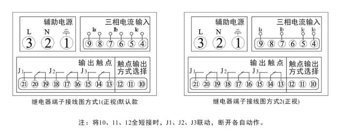通過機(jī)殼內(nèi)不同跳線位置可分別實(shí)現(xiàn)三組輸出接點(diǎn)同時報警和各自報警功能。